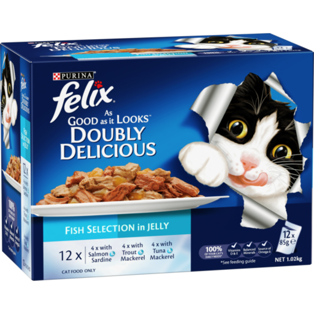 بورينا فيليكس اظرف طعام رطب مشكلة الاسماك للقطط البالغة 85x12غ