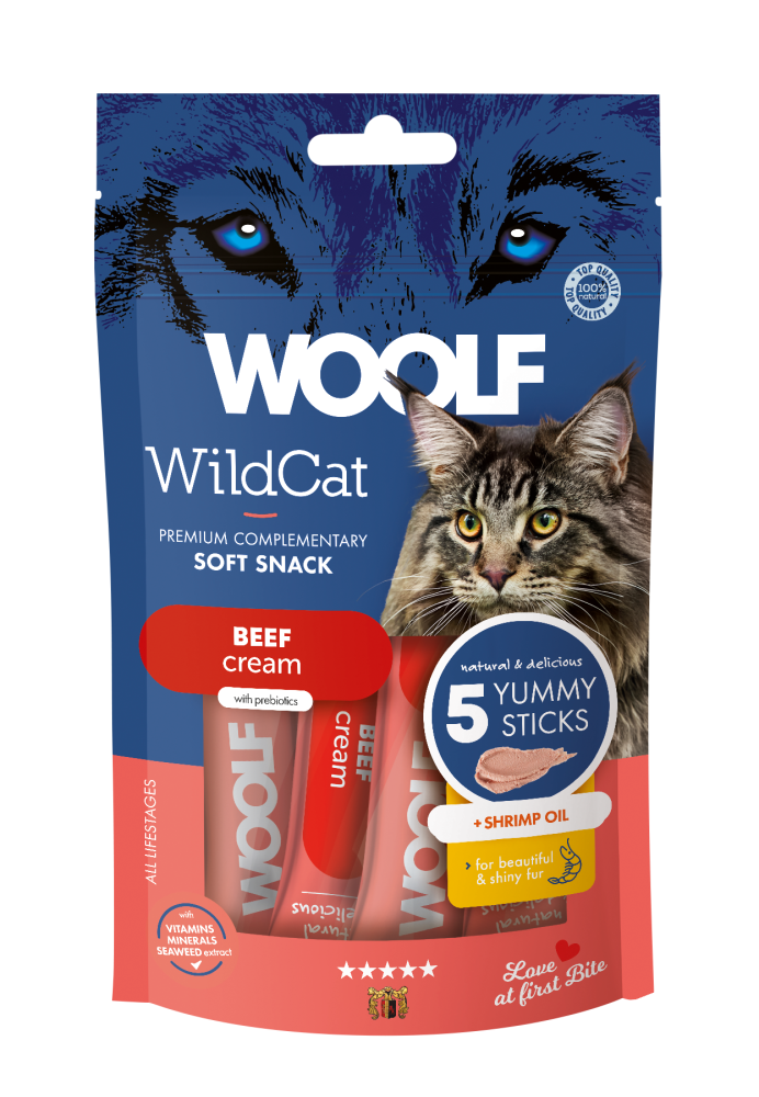 دلّل قطتك بمكافأة فاخرة من Woolf Wildcat Cream بطعم لحم البقر مع زيت الجمبري – عبوة تحتوي على 5 عيدان مغذية (إجمالي 70 غ). هذا الكريم الطبيعي 100٪ غني بالبروتينات من لحم البقر والدجاج، إلى جانب كبد الدجاج والزيوت المفيدة، مدعوم بالفيتامينات والمعادن، والبريبايوتكس، ومستخلصات الطحالب. زيت الجمبري يعزز لمعان الفرو ويمنحه ملمسًا حريريًّا، بينما تكوينه الرّطْبي يدعم راحة الجهاز الهضمي. مثالي كمكافأة مغذية أو تدليل صحي بين الوجبات.